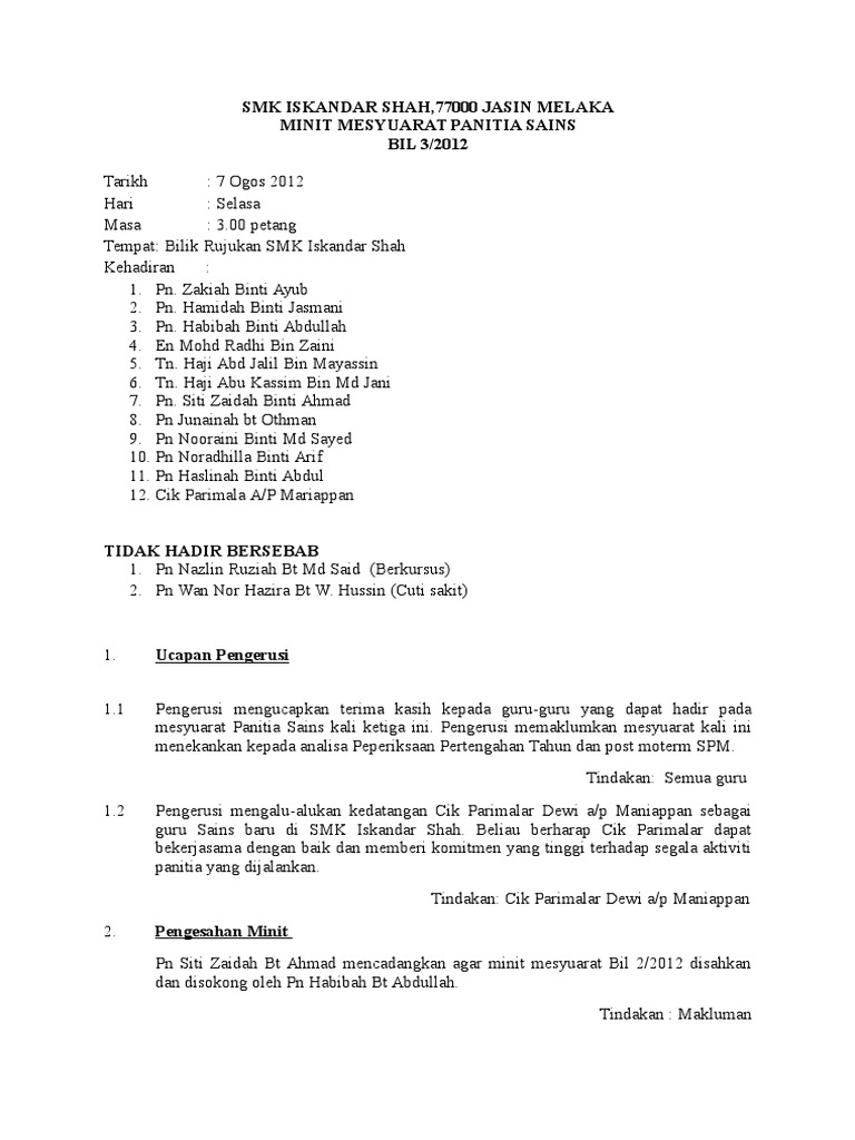 Minit Mesyuarat Panitia Sains Kali Ke 3 Pdf