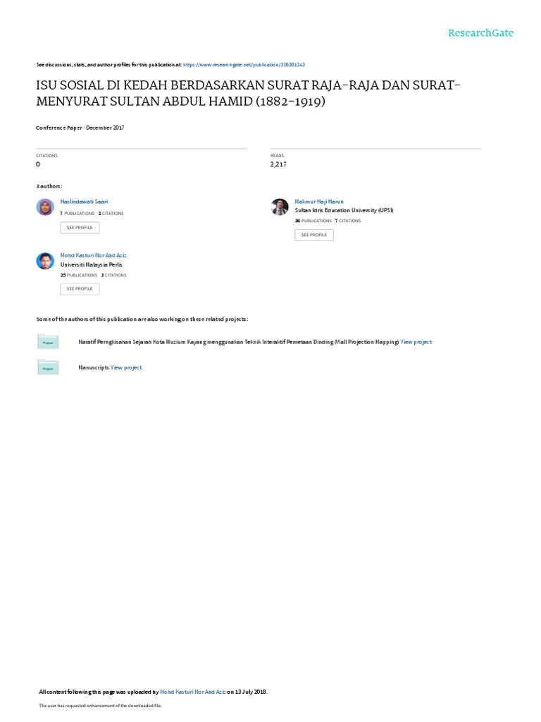 Isu Sosial Di Kedah Berdasarkan Surat Raja Raja Dan Surat Menyurat Sultan Abdul Hamid 1882 1919 Pdf Correlation And Dependence Customer Satisfaction