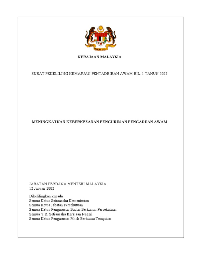 Pekeliling Kemajuan Pentadbiran Awam Bilangan 1 Tahun 2002 Pdf